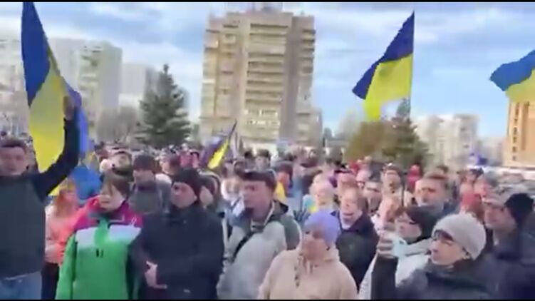 В Энергодаре начался митинг после похищения оккупантами заместителя мэра. Скриншот