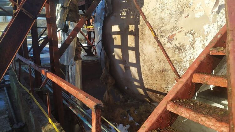 Губернатор Сумщины Дмитрий Живицкий опубликовал фото поврежденного резервуара с аммиаком. По его словам, это стало следствием обстрела завода "Сумыхимпром".