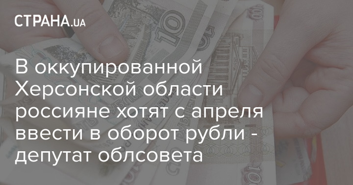 Депутат Херсонского облсовета Сергей Хлань заявляет, что с апреля контролируемые РФ территории Херсонской области перейдут в рублевую зону.