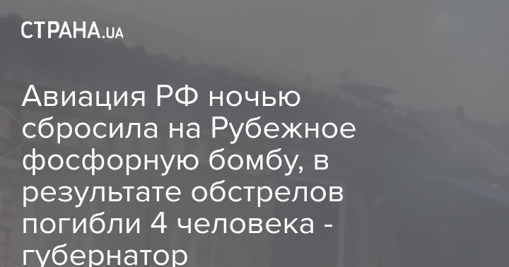 Авиация РФ ночью сбросила на Рубежное фосфорную бомбу, в результате обстрелов погибли 4 человека - губернатор