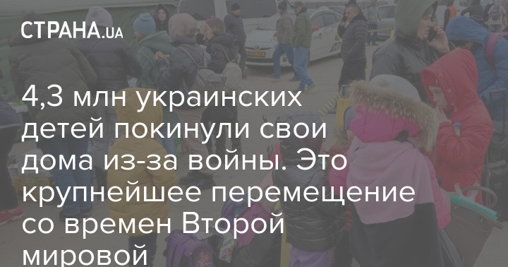 За месяц войны, которую Россия развязала в Украине, более половины украинских детей покинули свои дома - 4,3 миллиона.