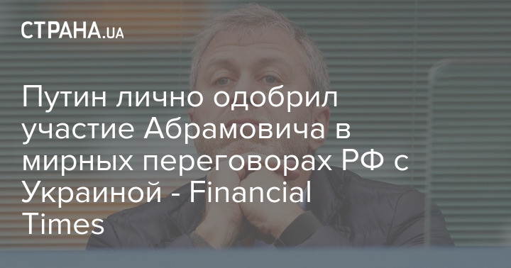 Путин лично одобрил участие Абрамовича в мирных переговорах РФ с Украиной - Financial Times