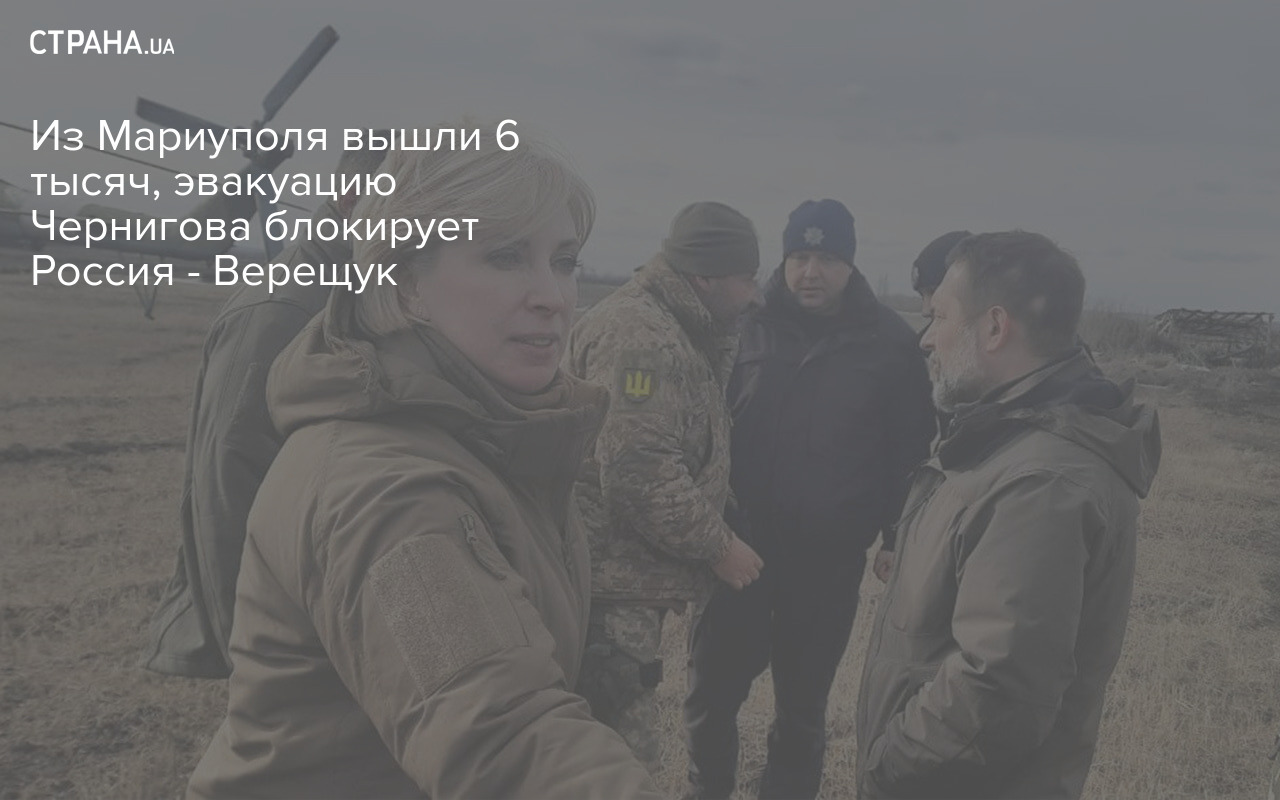 Она добавила, что эвакуацию населения из Чернигова не дают провести российские войска. Как и не дают ввести гуманитарной груз в город. "Пока нет возможности вывезти людей из Чернигова - россияне не дают коридор", - сообщила Верещук.
