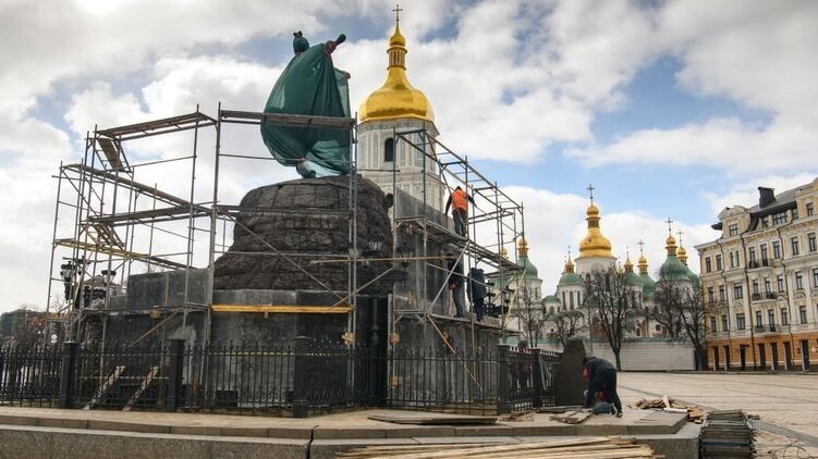 Также в столице с помощью мешков с песком от повреждений защищают памятники Княгине Ольге и Богдану Хмельницкому.
