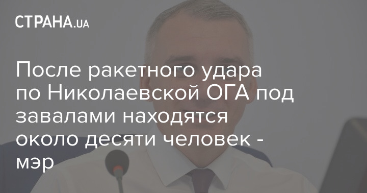 Мэр Николаева Александр Сенкевич заявил "Стране", что под завалами Николаевской обладминистрации, по которой ударила сегодня утром российская ракета, находится около десяти человек.