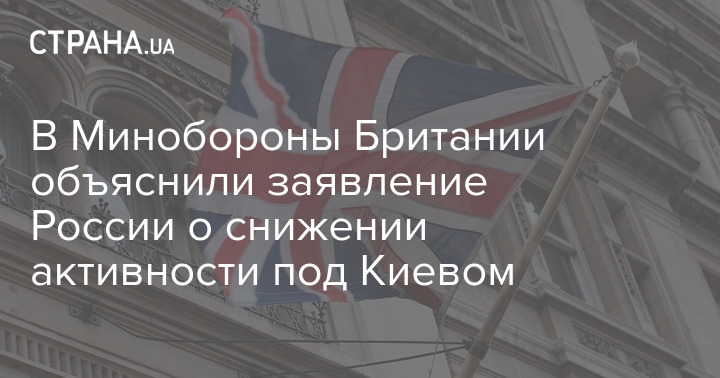 В Министерстве обороны Великобритании отреагировали на заявление Российской Федерации о "снижении активности" под Киевом. Там считают, что убедившись в невозможности добиться окружения Киева, Россия решила сократить свою активность на этом направлении и перебросить часть сил на донецкий и луганский участки фронта.
