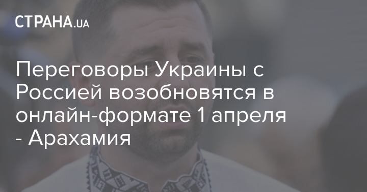 Переговоры Украины с Россией возобновятся в онлайн-формате 1 апреля. Об этом в Telegram-канале сообщил представитель украинской делегации Давид Арахамия.