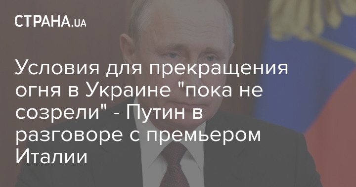 Премьер-министр Италии Марио Драги заявил, что глава РФ Владимир Путин в разговоре с ним сказал, что время для встречи с президентом Украины Зеленским "еще не наступило", а условия для прекращения огня в Украине "пока не созрели".