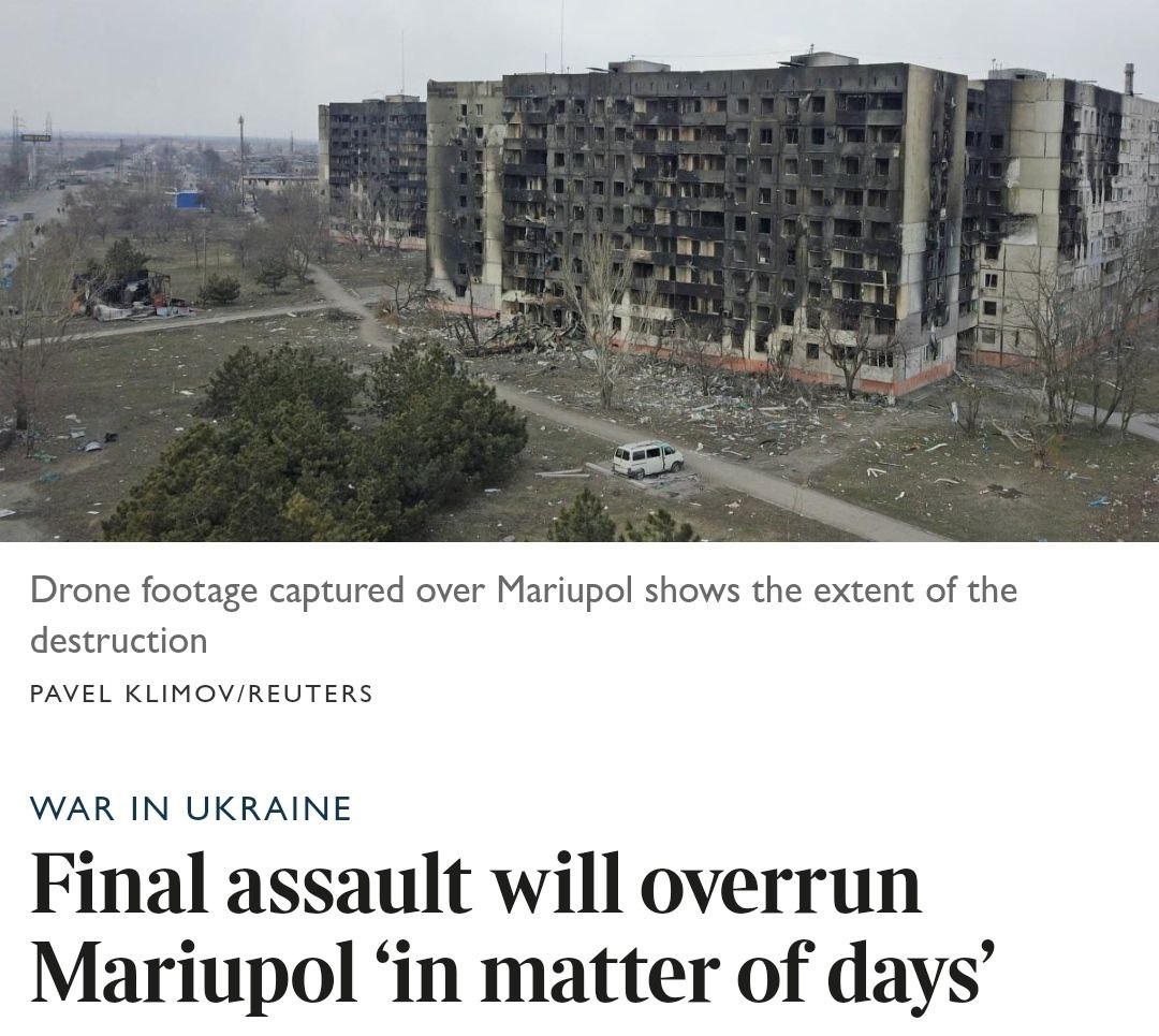 06.13 Британская The Times пишет, что Мариуполь находится на грани падения. И счёт идёт на дни.