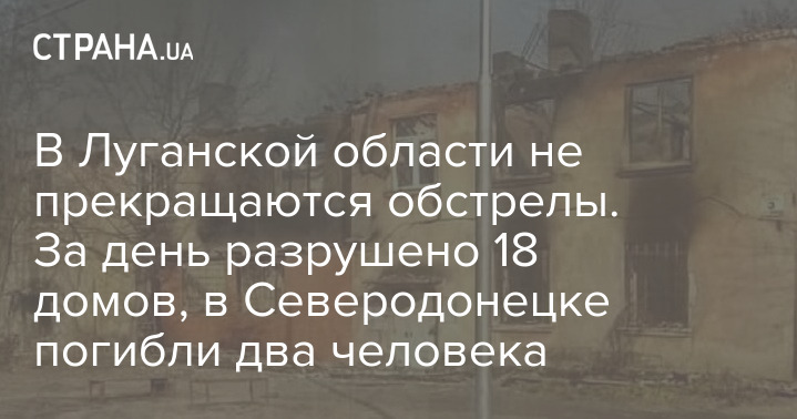 В Луганской области не прекращаются обстрелы. За день разрушено 18 домов, в Северодонецке погибли два человека