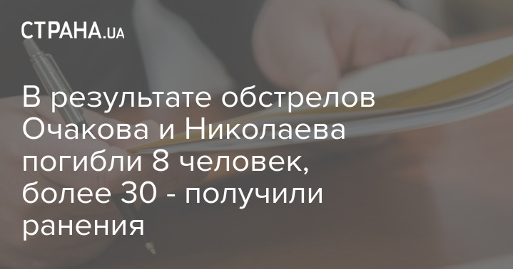 В результате вчерашних обстрелов Очакова и Николаева погибли 8 человек. Еще 34 - получили ранения. Офис генерального прокурора Украины начал расследование по факту нарушения законов и обычаев войны, соединенного с умышленным убийством.