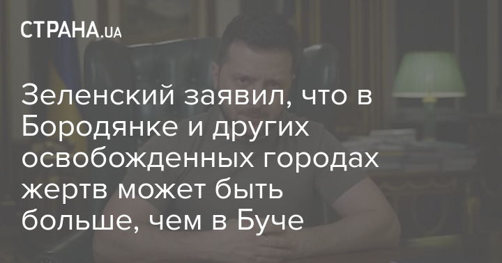 "Уже есть информация о том, что в Бородянке и некоторых других освобожденных городах количество жертв оккупантов может быть еще больше. Во многих селах освобожденных районов Киевской, Черниговской и Сумской областей оккупанты делали такое, чего местные не видели даже во время нацистской оккупации 80 лет назад", - сказал Зеленский.