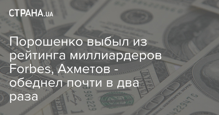 Самым богатым украинцем, по данным Forbes, остается Ринат Ахметов: в глобальном рейтинге с размером личного состояния в $4,2 млрд он занимает 687 место. В прошлом году он находился на 327-м месте, а его состояние составляло $7,6 млрд.