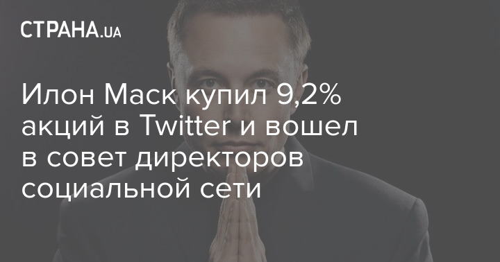 Главный исполнительный директор Tesla Илон Маск купил 9,2% акций Twitter и вошел в совет директоров компании.