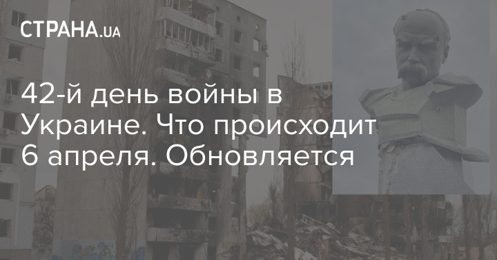 В среду, 6 апреля, в Украине идет уже 42-й день войны с Россией, которая вторглась 24 февраля.