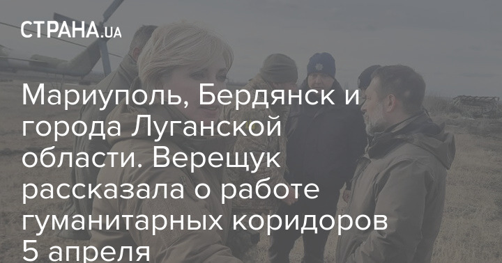 Вице-премьер, министр Украины по реинтеграции временно оккупированных территорий Ирина Верещук рассказала о работе гуманитарных коридоров во вторник, 5 апреля.