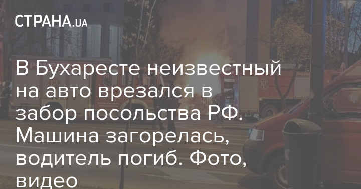В столице Румынии Бухаресте в забор посольства России врезался неизвестный автомобиль. После столкновения машина загорелась, а водитель погиб.