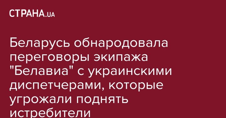 Расшифрована запись переговоров экипажа самолета авиакомпании "Белавиа" с украинским диспетчером, который заявил, что в случае невыполнения указаний в воздух будут подняты истребители. Запись переговороа опубликовала газета администрации президента Беларуси "Беларусь сегодня".