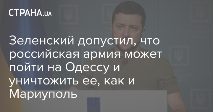 Зеленский допустил, что российская армия может пойти на Одессу и уничтожить ее, как и Мариуполь