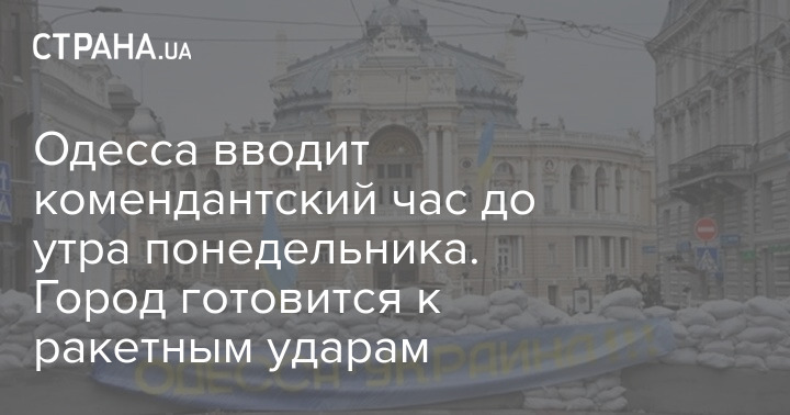 Комендантский час вводится с вечера субботы до утра понедельника в связи с ракетным ударом по Краматорску. Как сообщается, в Одессе есть риск ракетных ударов 10 апреля.