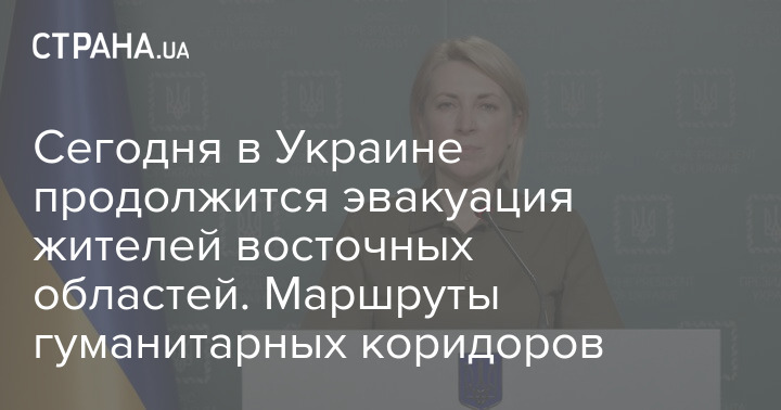 Вице-премьер Ирина Верещук обнародовала список гуманитарных коридоров для эвакуации жителей Донецкой, Луганской и Запорожской областей, согласованных на сегодня, 15 апреля.