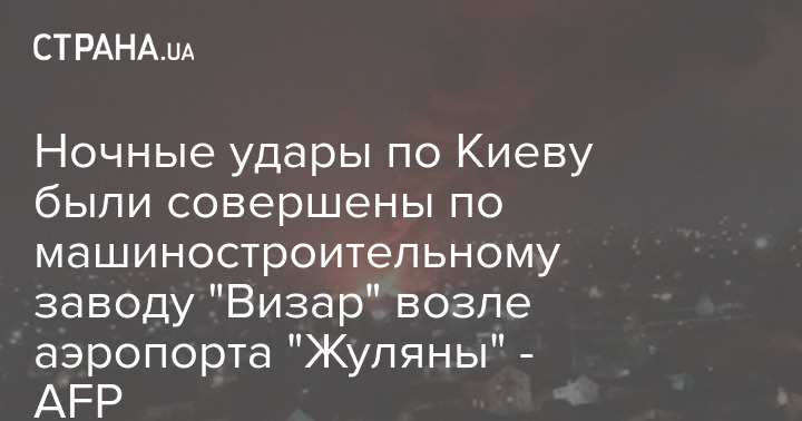Как утверждает AFP, серьезные повреждения получили цех и административное здание завода "Визар" в пригороде Киева Вишневое возле международного аэропорта "Жуляны".