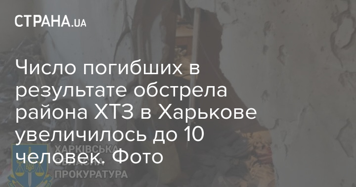 Прокуратура Харьковской области сообщает о 10 погибших и 35 раненых в результате обстрела россиянами Индустриального района города Харькова.