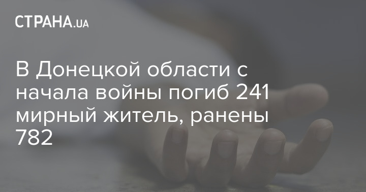 С начала полномасштабного вторжения российских войск в Украину 24 февраля в результате обстрелов и бомбардировок в Донецкой области погиб 241 мирный житель, ранено еще 782.