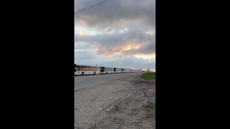Опубликовано соответствующее видео с огромной колонной автобусов.