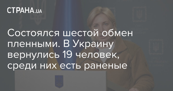Вице-премьер Ирина Верещук сообщила об очередном обмене пленными. По ее словам, в Украину вернулись 19 человек из которых десять военных (включая двоих офицеров) и девять гражданских.