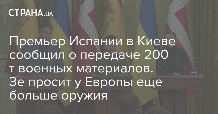Премьер Испании в Киеве сообщил о передаче 200 т военных материалов. Зе просит у Европы еще больше оружия
