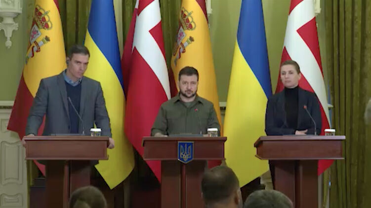 Президент Украины Владимир Зеленский встретился с премьер-министром Дании Метте Фредериксен и премьер-министром Испании Педро Санчесом, которые прибыли с визитами в Киев.