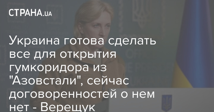 Украина готова сделать все для открытия гумкоридора из "Азовстали", сейчас договоренностей о нем нет - Верещук