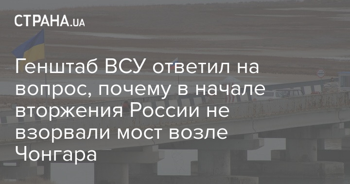 Отметим, что вопросы, почему не был взорван мост на Чонгаре накануне начала вторжения, ряд украинских журналистов и блогеров задают уже давно. И сегодня Генштаб, по сути, их впервые прокомментировал", - написал канал.