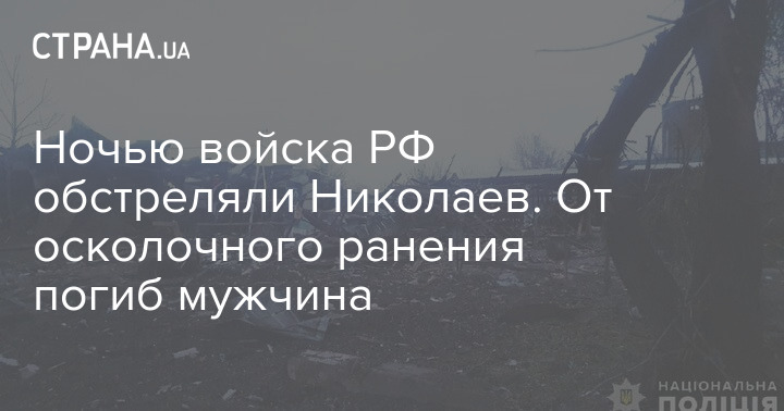 Ночью войска РФ снова обстреляли Николаев. В результате осколочное ранение получил мужчина, который находился в собственном доме. Он скончался