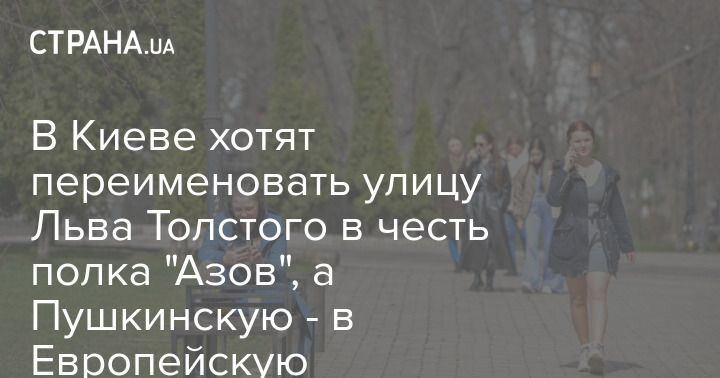 Инициатор переименования депутат Киевсовета Олеся Пинзенык рассказала, что предлагается переименовать улицу Пушкинскую в улицу Европейскую, а улицу Льва Толстого в улицу Полка "Азов".