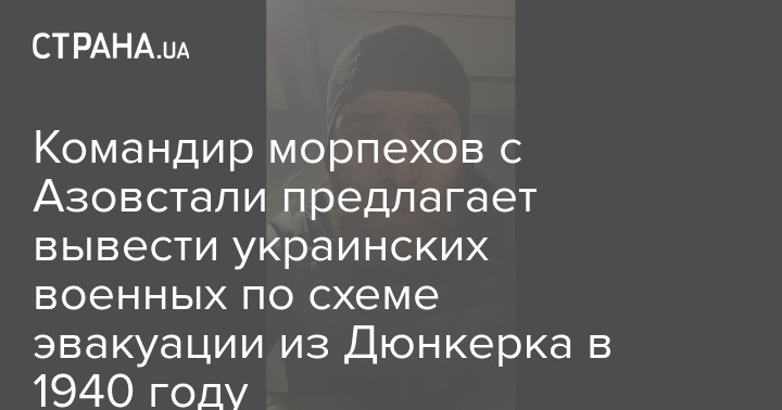 Командир морпехов с Азовстали предлагает вывести украинских военных по схеме эвакуации из Дюнкерка в 1940 году
