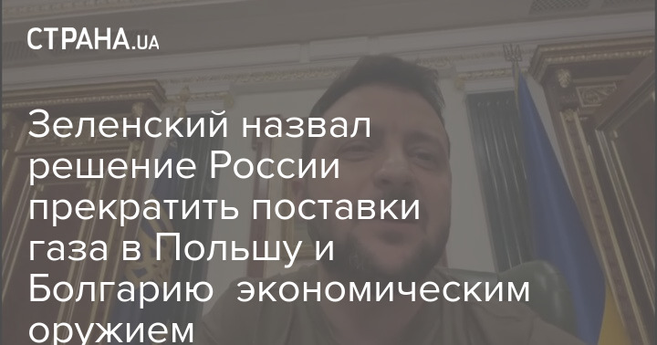 Зеленский назвал решение России прекратить поставки газа в Польшу и Болгарию экономическим оружием