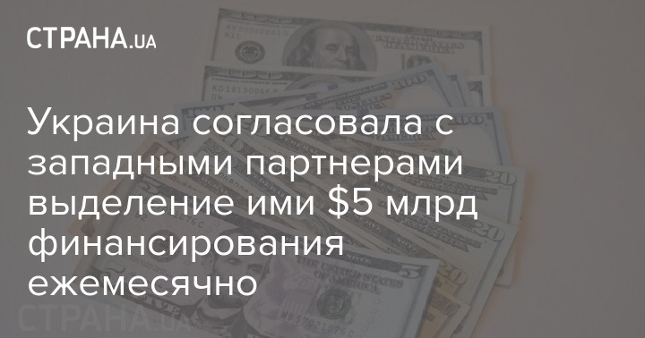 Украина согласовала с западными партнерами ежемесячное выделение ими финансирования в размере пяти миллиардов долларов на удовлетворение гуманитарных нужд страны.