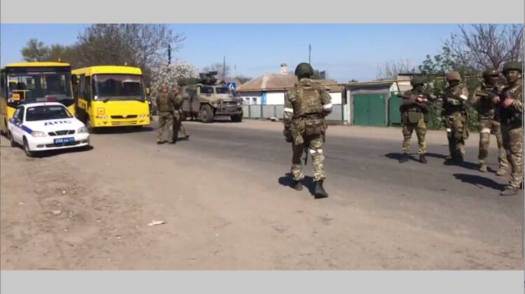 В Мариуполь въехали машины с логотипом ООН, с белыми флагами и эвакуационные автобусы. За ними наблюдают российские военные.