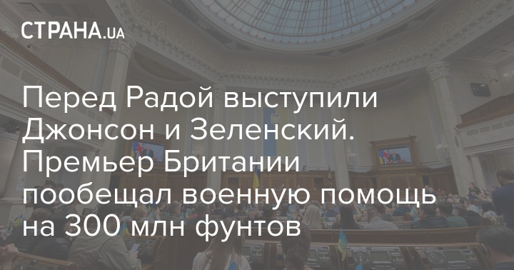 Перед Радой выступили Джонсон и Зеленский. Премьер Британии пообещал военную помощь на 300 млн фунтов