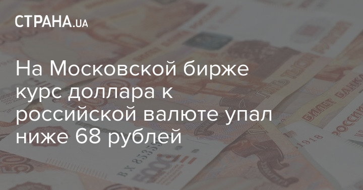 На Московской бирже курс доллара опустился ниже 68 рублей впервые с марта 2020 года и составил 67,91 рубля.