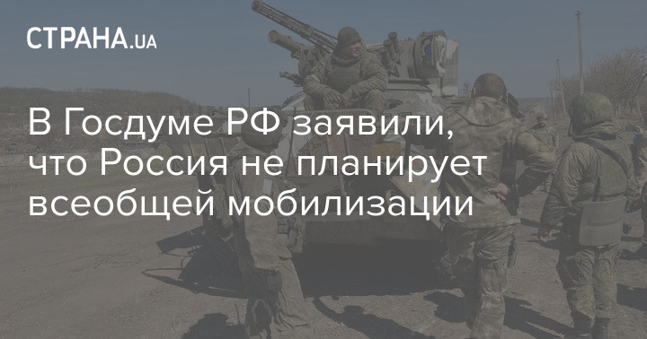 В Госдуме РФ заявили, что Россия не планирует всеобщей мобилизации