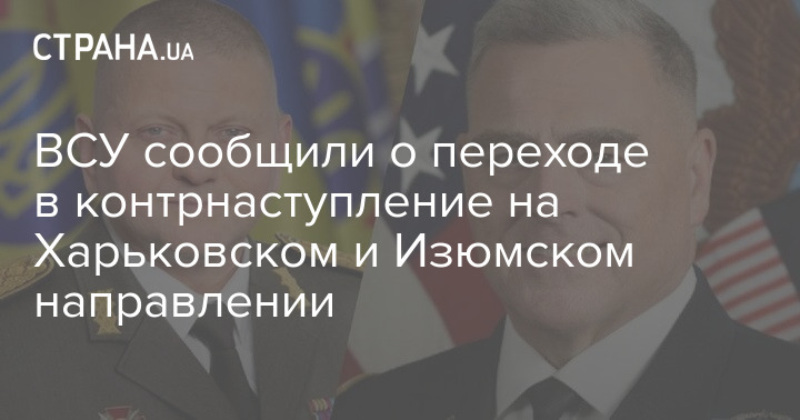 ВСУ перешли в контранступление на Харьковском и Изюмском направлениях, где из-за продолжающихся обстрелов находиться на улице без необходимости опасно. Об этом главнокомандующий ВСУ Валерий Залужный сообщил в Facebook по итогам разговора с председателем объединенного комитета начальников штабов США генералом Марком Милли.