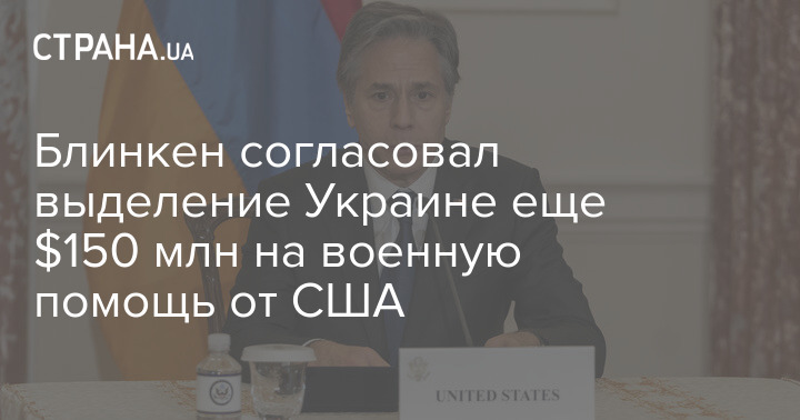 Госсекретарь США Энтони Блинкен сообщил, что согласовал выделение для Украины 150 миллионов долларов на оружие и оборудование.