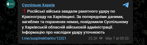 Ранее мы писали, что за минувшие сутки, 6 мая, российские оккупанты совершили три обстрела Харькова из РСЗО и артиллерии. Под огнем оказались Северная Салтовка и Индустриальный район (ХТЗ).
