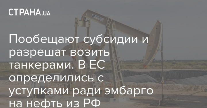 Европейским странам могут предложить некоторые уступки для того, чтобы согласовать шестой пакет санкций против России и ввести постепенное эмбарго на российские энергоносители. Об этом пишет агентство Reuters со ссылкой на свои источники.