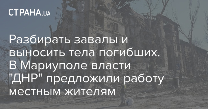 Разбирать завалы и выносить тела погибших. В Мариуполе власти "ДНР" предложили работу местным жителям
