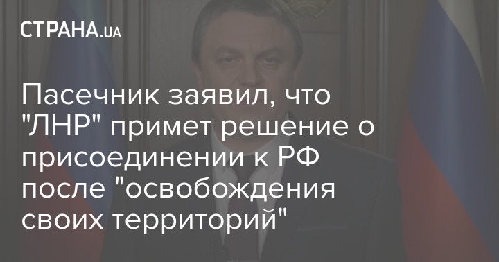 "Глава" самопровозглашенной "ЛНР" Леонид Пасечник заявил, что в "республике" будут принимать решение о вхождении в состав России после окончания боевых действий.