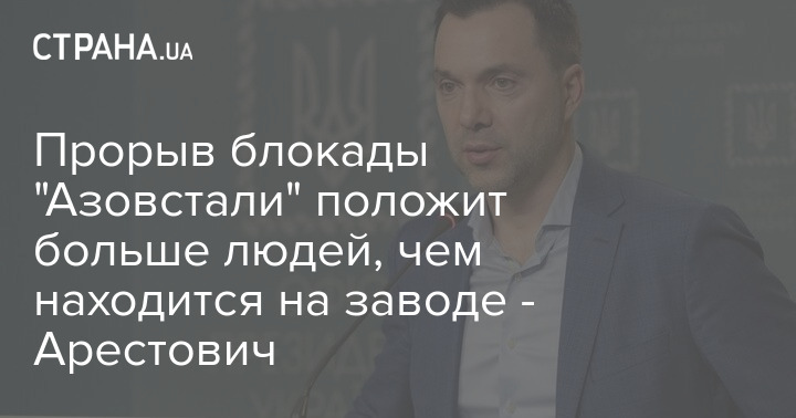 Прорыв блокады "Азовстали" положит больше людей, чем находится на заводе - Арестович